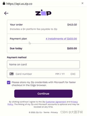 据介绍,在美国一般只有 Target、Walmart 等特定电子商务网站才会提供 BNPL 功能,但现在微软通过与金融服务公司 Zip 的合作,实现了在 Edge 浏览器提供 BNPL 支付选项,适用范围为 35 美元 - 1000 美元内的订单交易,可在 6 周内分 4 期付款。