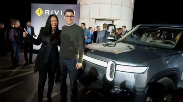 Rivian创始人RJ Scaringe与艺人Rihanna合影