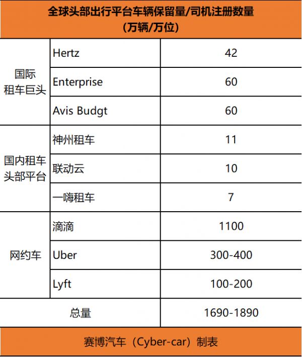 目前来看,汽车租赁、网约车等共享出行市场,基本还属于传统燃油车存量市场。根据全球头部出行平台车辆持有量及司机注册量统计,预计这一市场在1500-2000万辆左右。