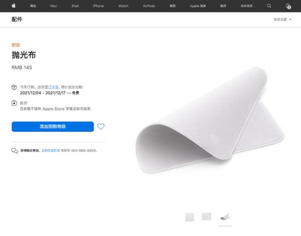 此前,苹果在10月的特别活动上发布了一款抛光布,售价为19美元,在中国卖145元。一经发售就被一抢而空,部分地区甚至要等待三个月才能入手。