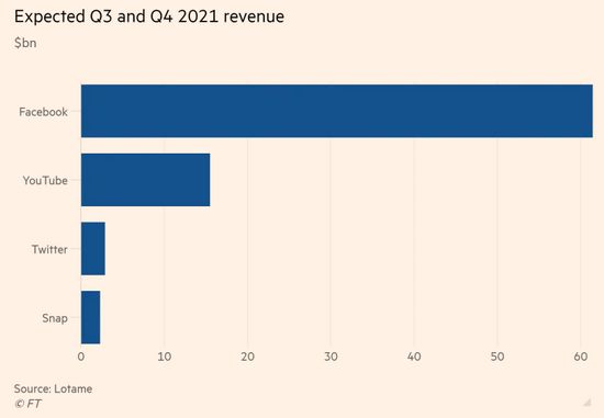 从第三季度的财报数据来看,各家的广告收入并不能够证明Lotame那个令人震惊的预测。其中,Twitter的广告收入为11.4亿美元,基本符合市场预期。Facebook则为282.76亿美元,同比增长33%,环比略减少了3.04亿美元。Snap营收不及预期的11亿,为10.7亿美元。