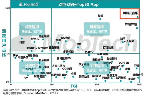 Z 世代喜爱网易云音乐。QuestMobile 发布的《Z 世代洞察报告》显示,Z 世代有超过 3.6 亿人,其手机消费能力、线上消费意愿都高于其他群体;他们喜爱的 App 集中在网易云音乐、哔哩哔哩、抖音、网易有道词典、快手、芒果 TV 等产品上。