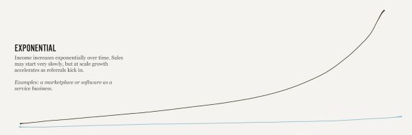 指数式增长来自于,产品的每一次销售,都使下一次销售更容易。它需要一个你可以重复销售的产品(无论是实物还是数字产品),可以大规模地创造。这意味着你不可能是在卖你的时间。