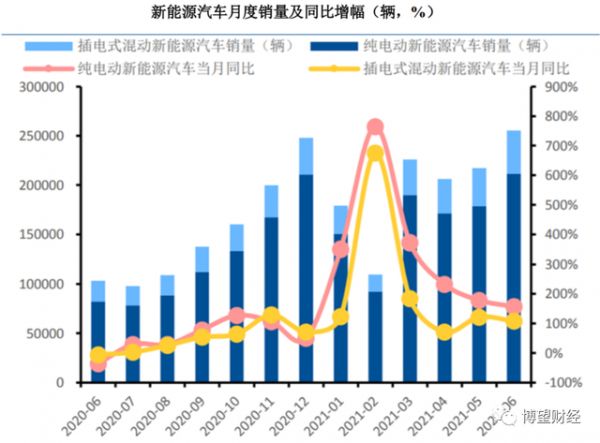 政策带动下的新能源汽车发展突飞猛进,产销规模迅速扩大。据中国汽车工业协会最新统计,2021年上半年,国内新能源汽车销量达到110.3万辆,与去年同期相比增长了234.9%,市场渗透率达到10%左右,中国汽车工业协会预计2021年中国新能源汽车销量将达240万辆。