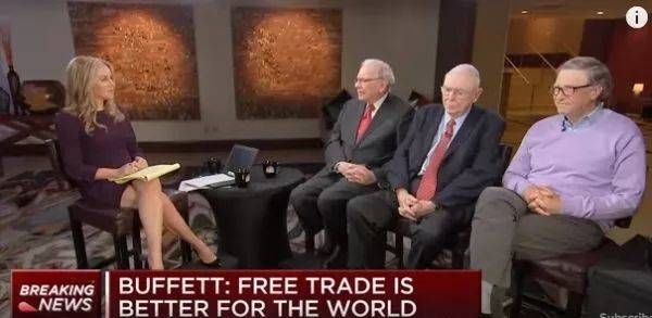 2019年5月6日,在CNBC的栏目“Squawk Box”中,就是特朗普刚刚在推特上宣布会在5月10号提高关税的那一天,巴菲特接受了电视采访。同时接受采访的还有查理芒格和比尔盖兹。