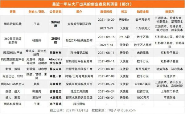 这也导致从大厂离职的创业者仍旧是资本和创投市场关注的重点。本文盘点 2021 年从 BAT 等大厂出来的创业者。