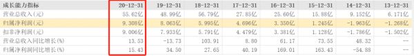 在拉卡拉2020年度财报中,报告期内,公司全年实现总营业收入55.62亿元,同比增长13.53%;归属上市公司股东净利润9.31亿元,同比增长15.43%,连续6年归母净利润同比增长超15%。