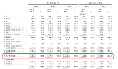 据招股书显示,2018年、2019年、2020年及2021年上半年,商汤科技净亏损分别为34.33亿元、49.68亿元、121.58亿元及37.13亿元,三年半累计亏损达242亿元。