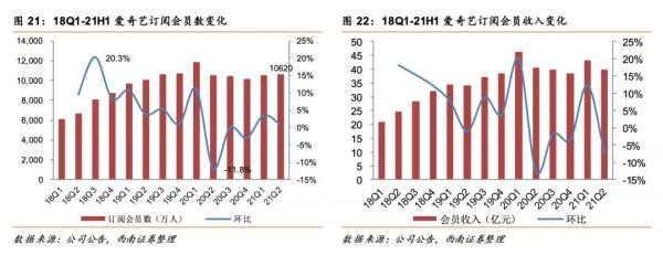 会员服务收入主要来自于会员的付费。在平台间竞争压力以及短视频的双重压力下,爱奇艺订阅会员规模自2020年二季度开始出现负增长,天花板压力已现。