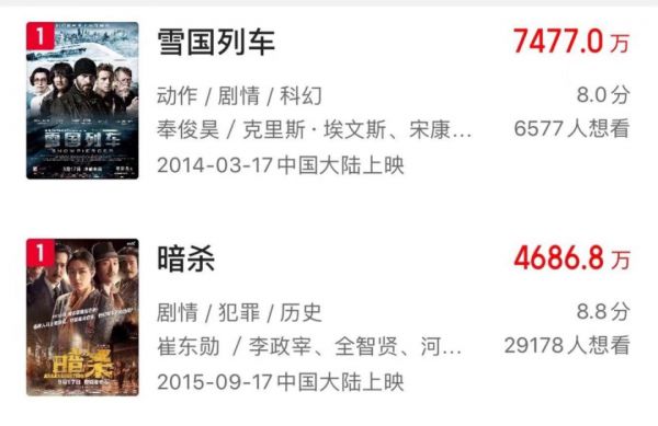 2014年,中韩签署《中韩电影合拍协议》,标志着中韩进入蜜月期。当年包括合拍片在内,总共上映10部韩片,其中《雪国列车》以7477万票房,创造了韩国引进片在中国的最佳战绩。