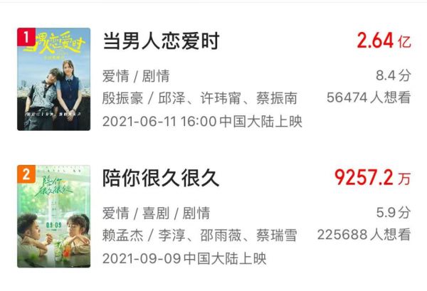 邱泽主演的《当男人恋爱时》以2.64亿票房排在了今年进口片票房第六名。更令人意外的是,台湾已经上映两年之久的《陪你很久很久》,也以黑马之势拿下近亿的票房。