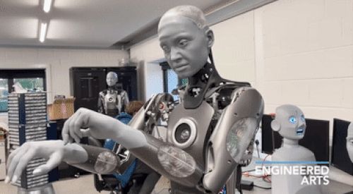 当然,Ameca 首先要配备广泛的传感器,包括摄像头、麦克风、位置编码器以及具有数千个参数的智能电子设备,以确保它是响应性和交互性的机器。