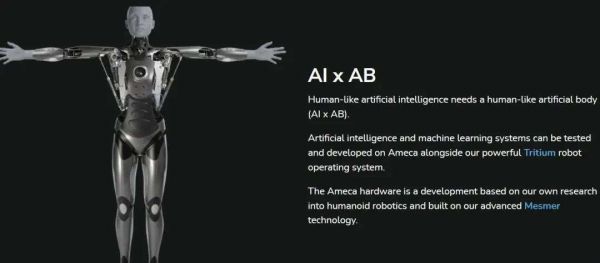 为什么 Ameca 的表情这么「有人味」?根据官网介绍,Ameca 结合了 AI 与 AB(Artificial Body)技术,底层系统是机器人操作系统 Tritium 和工程艺术系统 Mesmer。