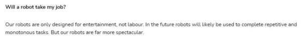 从官网问答页面来看,Engineered Arts 专注于创造用于娱乐的人形机器人,Ameca 可能会成为场地和活动的关注中心,而不是在各方面接替人类:
