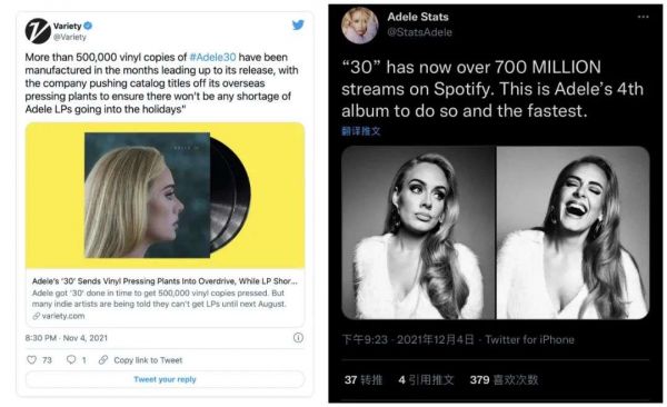 在国内音乐平台,这张数字专辑的销量也突破了23万张,销售额超过580万元。同时,《30》的黑胶唱片的预订数目已超过50万,有望创下21世纪以来的最高黑胶专辑销量记录。