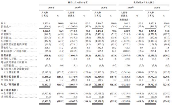 依托庞大的业务规模,商汤科技交出了一份营收成绩单:招股书显示,该公司在2018年、2019年及2020年的营收分别为18.5亿元、30.3亿元和34.5亿元;2021年上半年营收为16.5亿元,相比上年同期的8.61亿元增长91.8%。