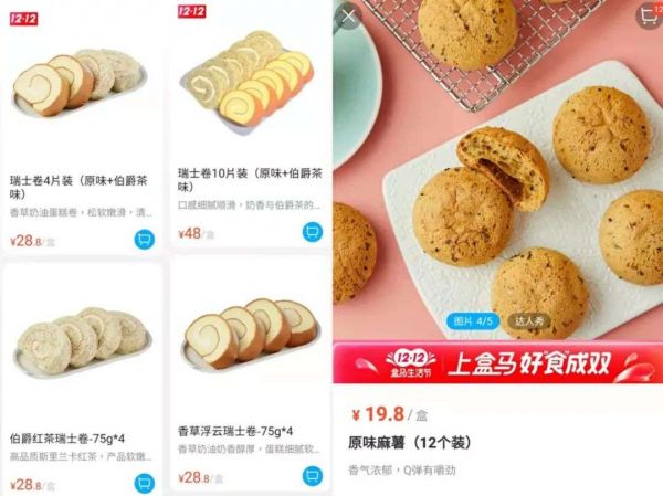 被传统商超快速复制的,不仅是会员店的经营模式,还包括各式风靡网络的网红产品。盒马鲜生近期就推出了山姆同款麻薯面包和“原味+伯爵茶”口味瑞士卷,整体分量较小,但单价略高。其中,瑞士卷4片装售价28.8元,10片装售价48元,麻薯面包售价则为19.8元12个。