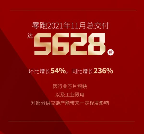 今年造车新势力集团中有两匹黑马,一匹是哪吒,另一匹则是零跑。今年11月,零跑汽车共交付5628辆新车,实现同比增长236%和环比增长54%。
