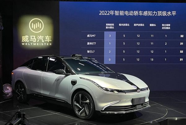 与零跑一样,威马也将以智能驾驶为切口,向高端市场发起冲击。例如其最新的旗舰轿车威马M7,全车搭载超过30个感知硬件,其中还包括3颗激光雷达,硬件水平达到了当今量产车中的天花板级别。