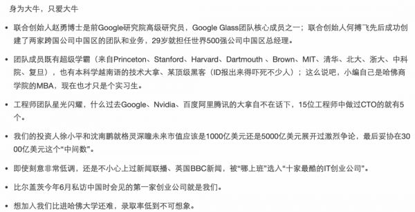 “工程师团队星光闪耀,什么过去Google、Nvidia、百度阿里腾讯的大拿自不在话下,15位工程师中做过CTO的就有5个。”