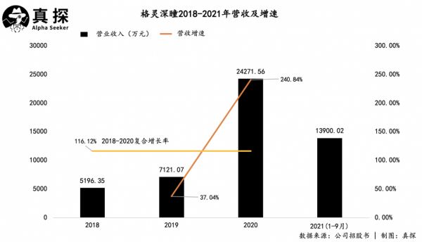 从收入上看,格灵深瞳的创收并不算多。据招股书显示,格灵深瞳2018年、2019年、2020年分别实现营收5196.35 万元、7121.07 万元、 2.43亿元,收入复合增长率达到 116.12%。对比来看,2018-2020年,商汤的营收分别为18.5亿元、30.3亿元、34.5亿元,是格灵深瞳的十倍以上。