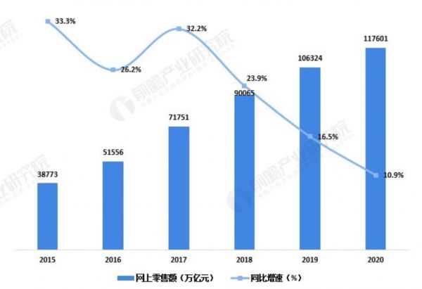 国家统计局最近披露的网络零售市场规模增长率数据也显示,我国线上零售市场的增速在逐步下降,从2018年的23.9%到2019年的16.5%,再到2020年的10.9%。
