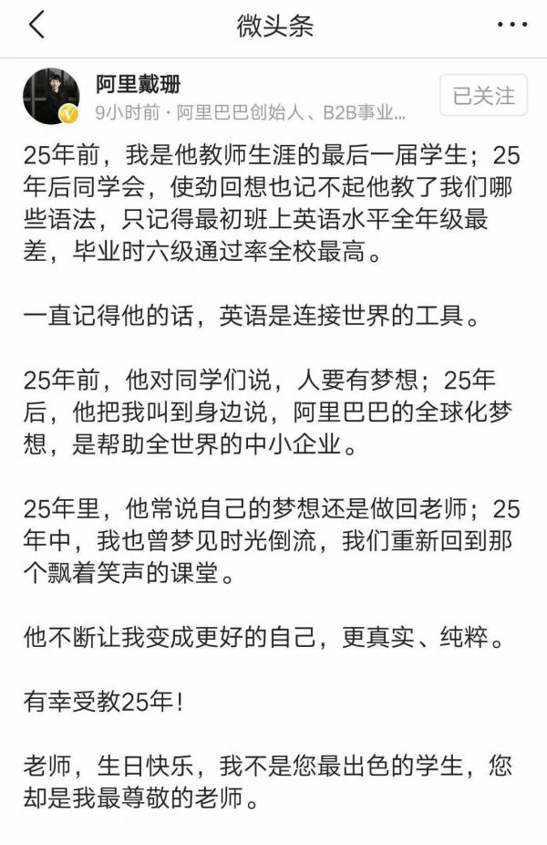 往后十多年,戴珊担任了阿里巴巴销售、市场推广、首席人才官、用户界面部门多个管理层职位,熟悉了公司各部门的业务运作。在员工眼中性情温的戴珊曾对媒体表示,“公司让我做销售我就做销售,让我做客服我就做客服,我不会想太多,就愿意乐呵呵地做。”