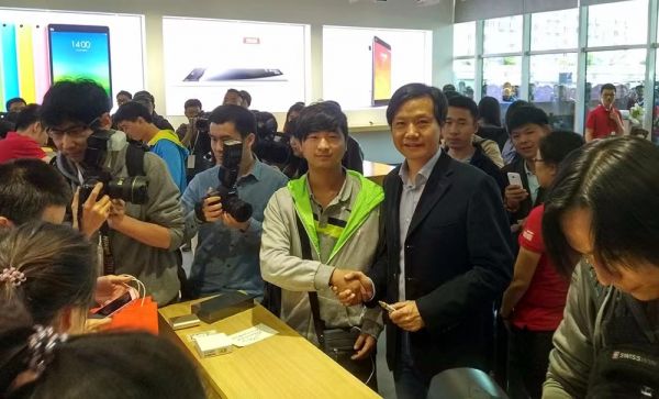 北京米家第一位现场购米粉和雷军合影