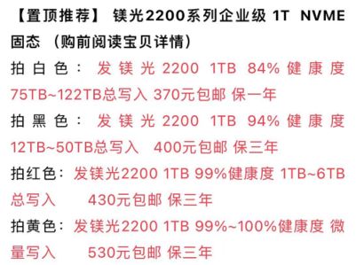 我们先来看看闲鱼上都有哪些矿盘,虽然型号繁多,但是个人认为矿盘主要分为三种:消费级固态硬盘,消费级OEM固态硬盘和企业级固态硬盘。