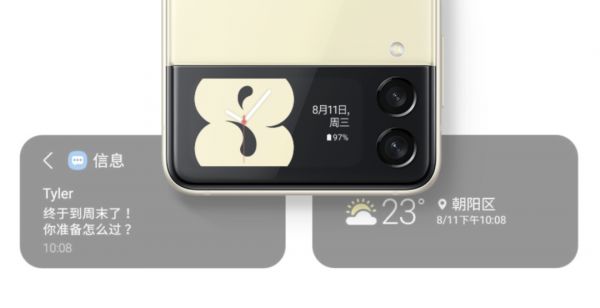 举个例子:折叠屏翻盖手机怎样才能在有限的空间内合理利用外屏的空间?一般来说,出于硬件成本和人体工程学的原因,品牌和用户都不会在外屏上花太多的精力和时间,外屏的用法更多的还是所谓的“辅助显示”,即消息通知、音乐控制或拍摄取景。