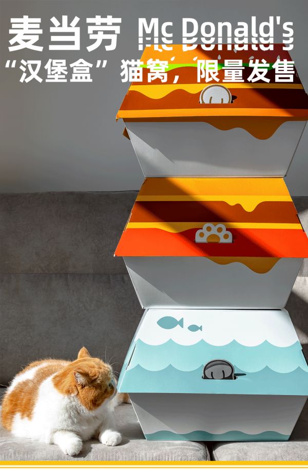 然后就是今天的汉堡盒猫窝,满足了年轻人的社交需求的同时,还洞察到了猫猫喜欢钻纸盒子的特点,满足了猫咪的真实需求。