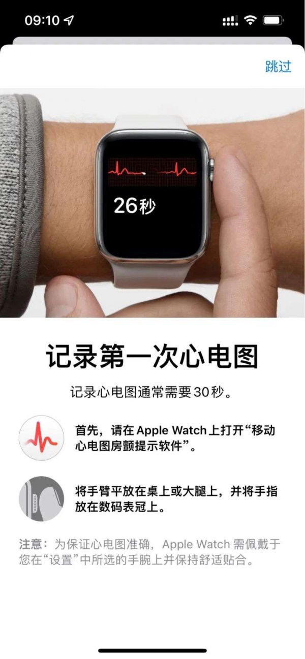 记录第一次心电图,记录心电图通常需要 30 秒。
