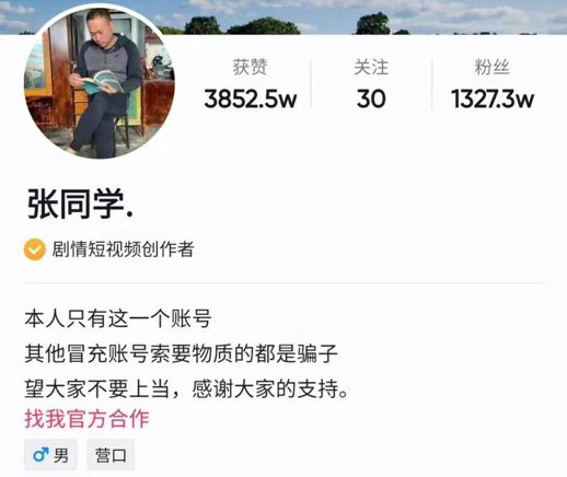 “张同学”实火。抖音上2个月据说增加了千万粉丝,如果单纯是粉丝增长,也不足以说明火的程度,但是“张同学”的热度出了“圈”——从“人民网评”到新京报,再到百度百科和百家号……互联网和短视频圈的从业者和围观者,一把一把小木柴,让这把“火”越来越旺。