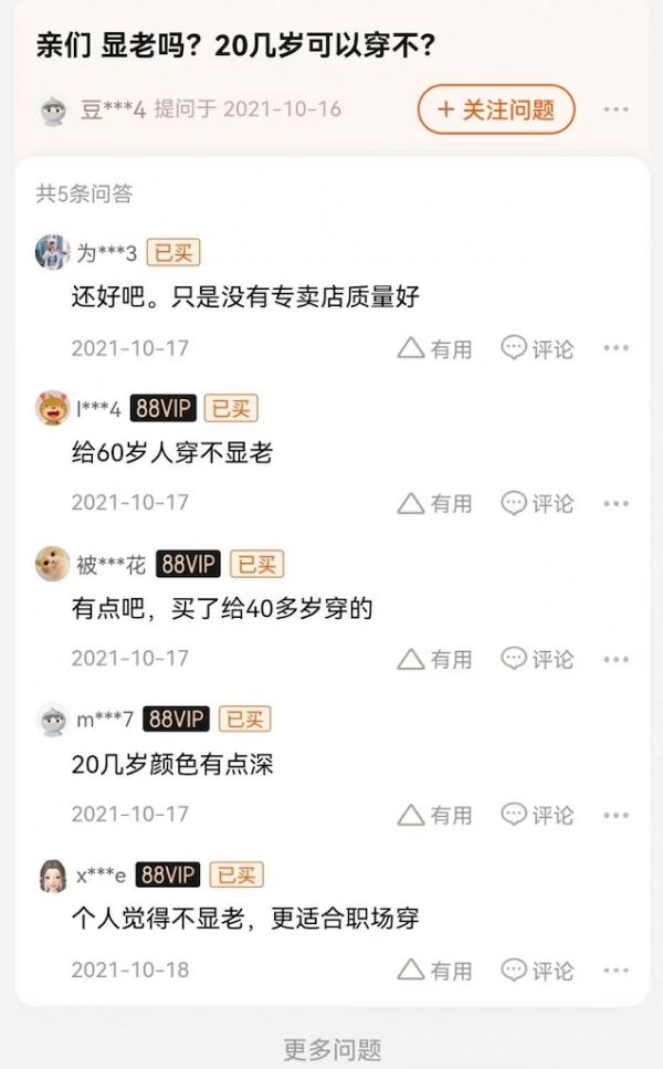 后来,即便有林更新、周杰伦等明星加持,也难改海澜之家的土味风格。“款式老套”“老男人的衣柜”等标签一直伴随着海澜之家。在一件海澜之家的长袖polo衫的互动区,有消费者提问“显老吗?20几岁可以穿不?”下方给出的回复却是“给60岁人穿不显老”“买给40多岁穿的”。