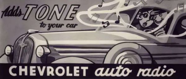 1920s,美国,史上首辆搭载了车载收音机的汽车缓缓驶上道路。尽管这个创意在当时囿于安装复杂、价格高昂、操作窒息(驾驶和听歌不能同时进行),并未能快速普及,但是“Adds TONE to your car(为你的车装上音调)”这则雪佛兰的广告无疑向世界宣告着汽车娱乐功能时代的到来。