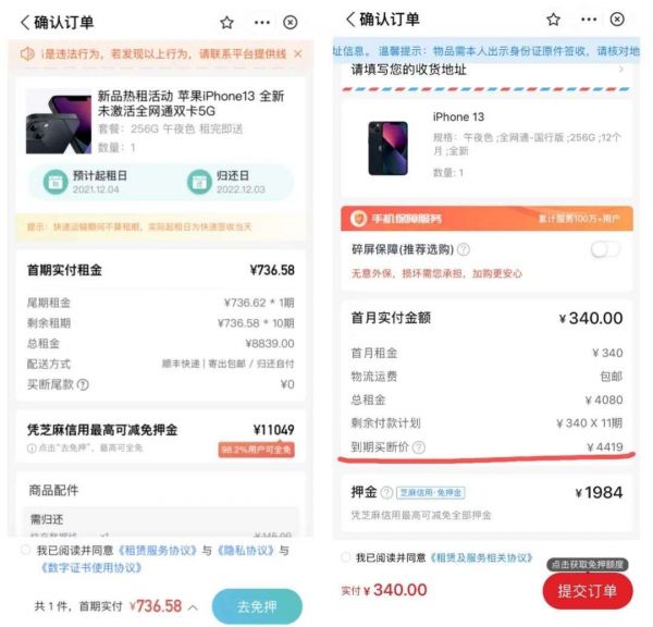 刘梦泽也是如此,想要拥有新手机,但信用额度不允许分期购买。“当时着了迷似的就想用苹果手机,身边好多同学都用上iPhone 13了,我手里还是卡得不行的安卓机。”经过反复权衡,她最终决定租用一台9.9成新的iPhone 12,日租价在10元左右,租期365天。