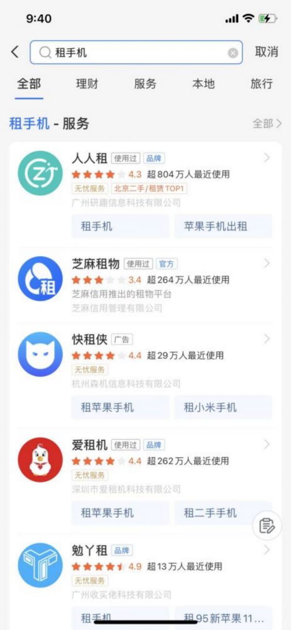 小赵称,他们公司主要做线上及线下的办公设备租赁,手机租赁业务在其中占比并不大,但目前每月订单规模已经到了400万-500万。根据企查查数据,目前登记在业的数码产品租赁公司近9万家,而支付宝、淘宝或者微信,则帮助租机平台链接起了消费者和这些大大小小的租赁公司。
