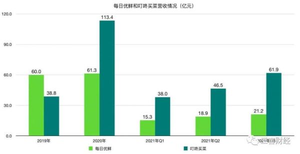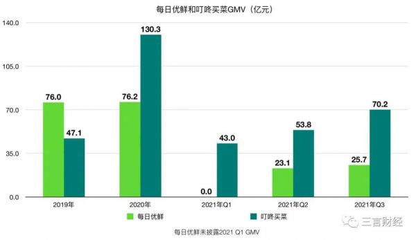 GMV方面,同样是自2020年起,叮咚买菜的GMV一直超越每日优鲜2倍以上;