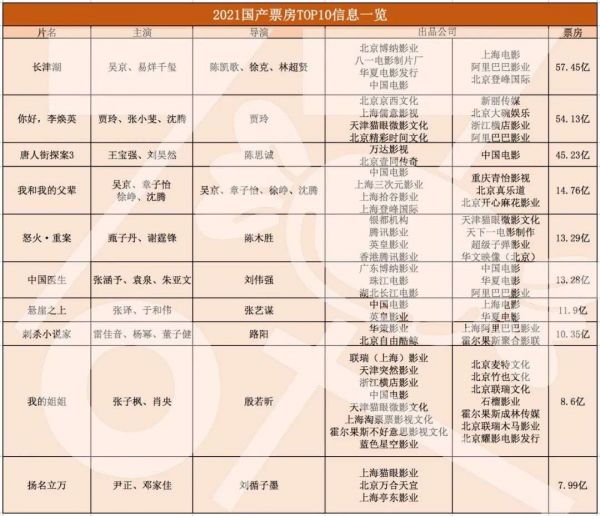 今年的国产片票房TOP10里有三个新导演,分别是贾玲、章子怡、沈腾。贾玲根据亲生母亲的故事改编电影《你好,李焕英》成了今年的年度票房亚军,章子怡、沈腾分别在《我和我的父辈》中导演处女短片,算是票房和口碑均在及格线上。