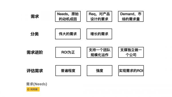 我们时时刻刻都要去评估需求(Needs)的普遍程度、需求(Needs)强度、实现需求(Needs)的ROI。