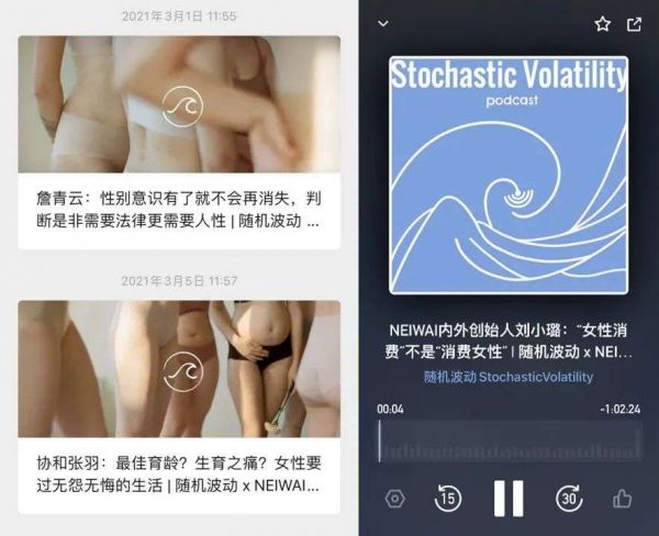 今年38节期间,内衣品牌内外联合随机波动与小宇宙平台,邀请辩手詹青云、妇产科医生张羽及内外品牌创始人刘小璐推出系列播客节目,将思考碰撞的女性对谈与品牌想要传递的价值相结合,从而唤起用户对品牌的价值认同与情感共鸣。