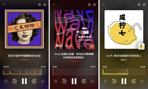 图为播客《红油妙手》《艺术叨叨》《咸柠七》