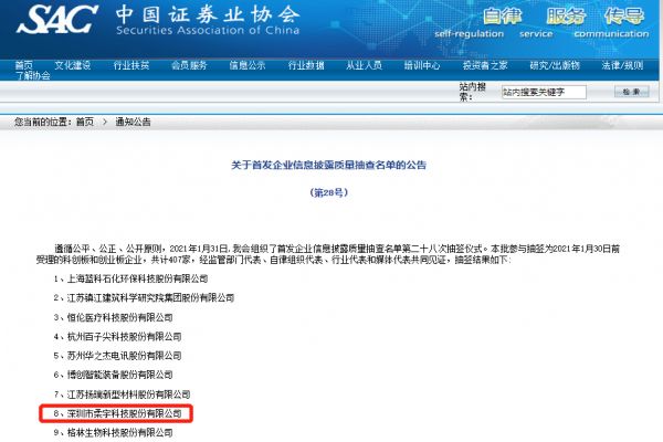 柔宇在企业信息披露质量抽查名单中,图源中国证券业协会
