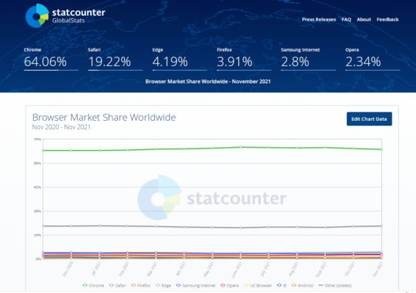 Firefox与IE已死?Chrome一统天下