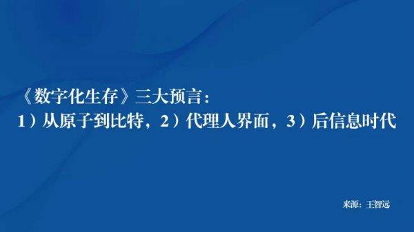 令人惊讶的是:25年后的今天再打开书中多半描述已经成为现实,主要围绕三个阶段的预言:1)从原子到比特,2)代理人界面,3)后信息时代