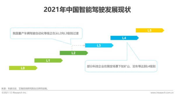 根据艾瑞咨询的研究报告,2021年我国量产车辆驾驶自动化等级正从L2向L3过渡,L3级别有条件自动驾驶乘用车有望在2023年开始逐步落地。
