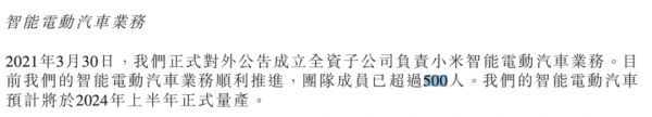 小米智能电动车业务团队,图源小米Q3业绩公告