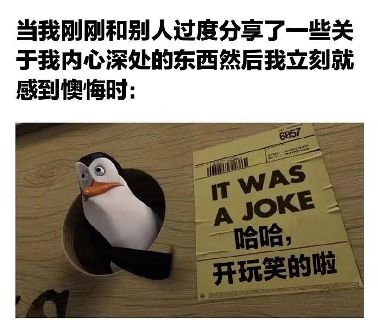 而当他们在别人面前增加了自我表露,讲了掏心掏肺的话之后,就更容易认为自己的分享“过度”了,觉得分享过多引起了他人的不适,对此感到后悔和焦虑。下次就告诫自己谨言慎行,将私人感受隐藏起来。只要封锁内心,谁都伤害不到我!