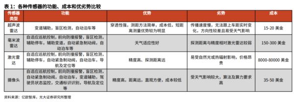 目前,电动车上搭载的传感器包括:视觉传感器、毫米波雷达、超声波雷达、激光雷达和车载传感器网络。