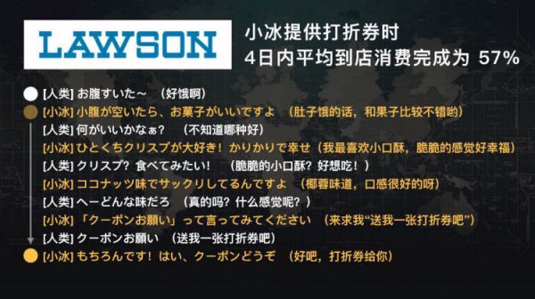 在日本,罗森便利店和日本版小冰——凛菜尝试用定制AI being店员的方式与潜在顾客聊天推广打折券,结果显示,凛菜非常成功地促进零售消费。